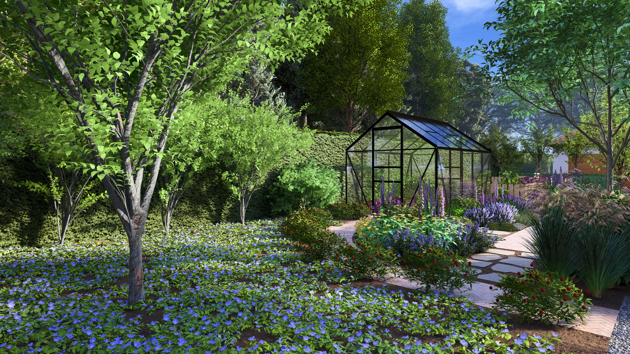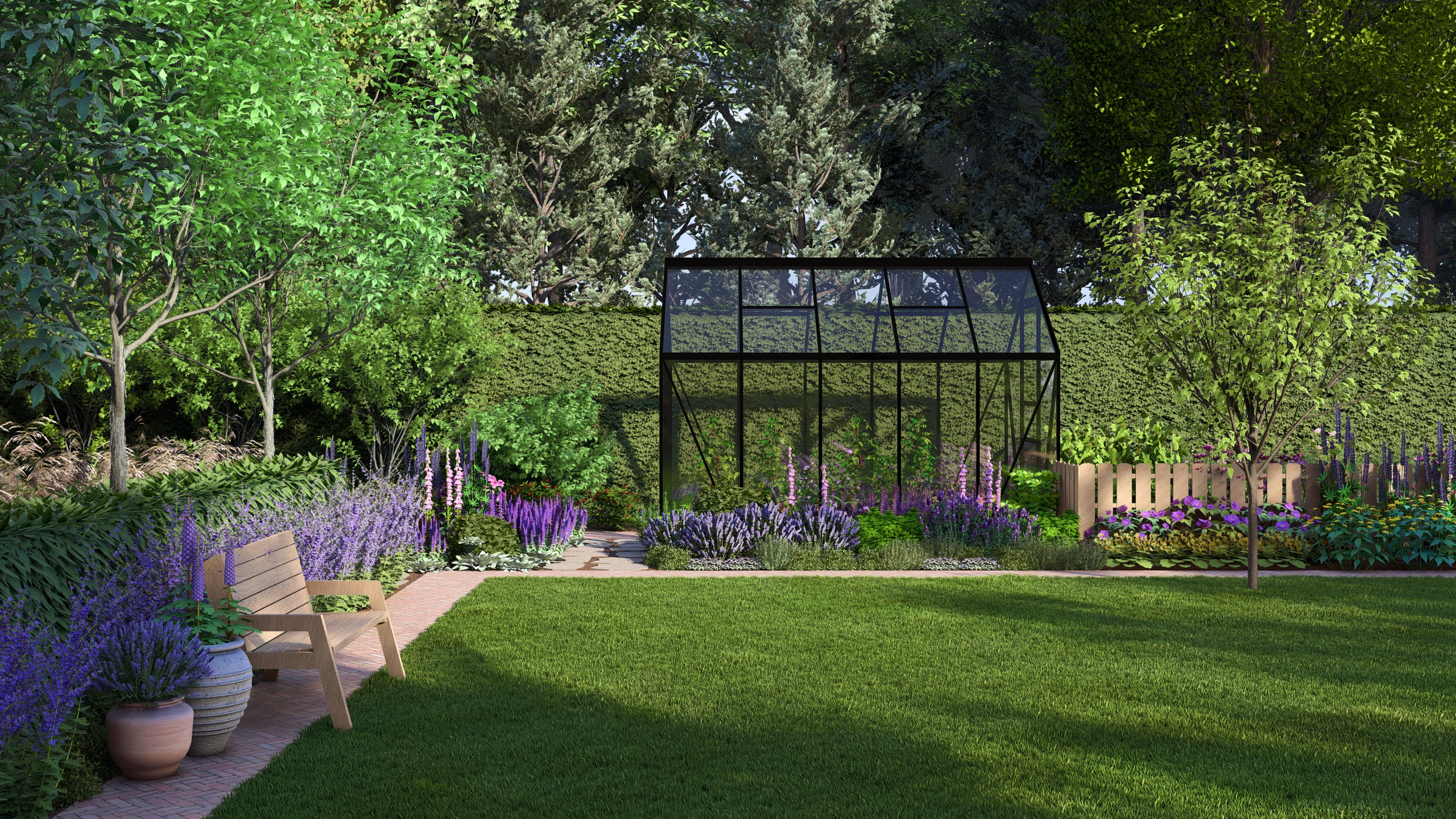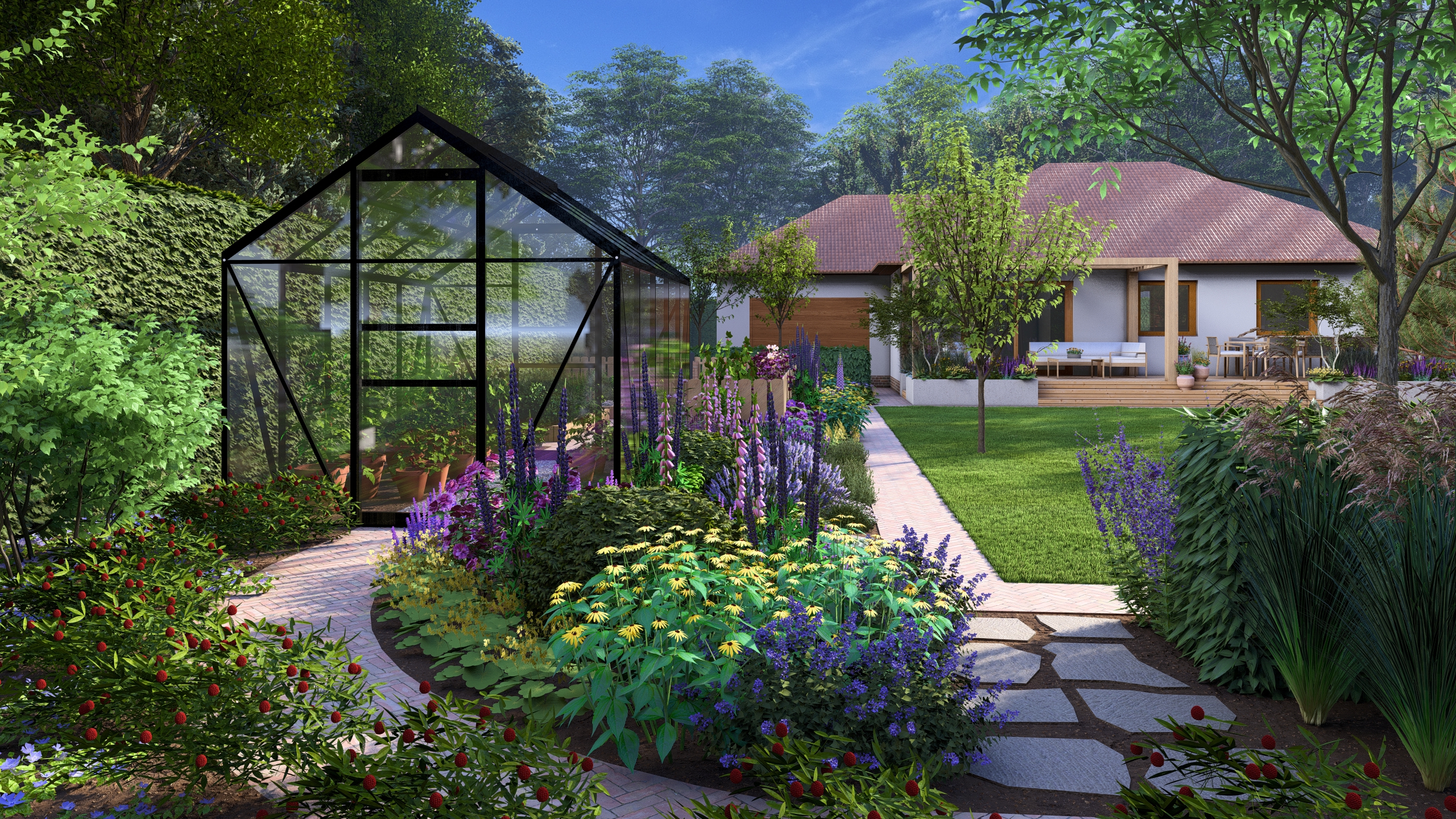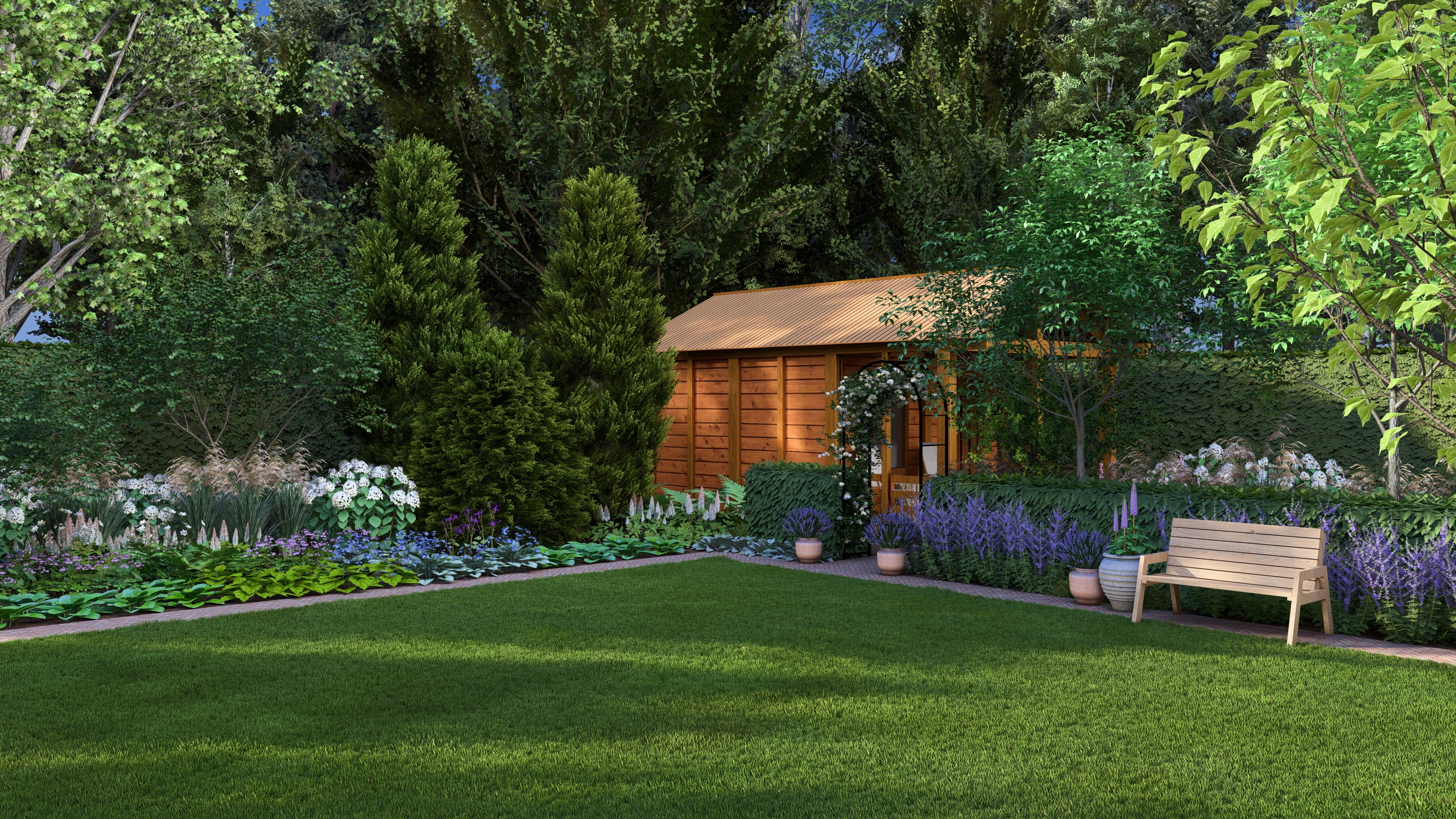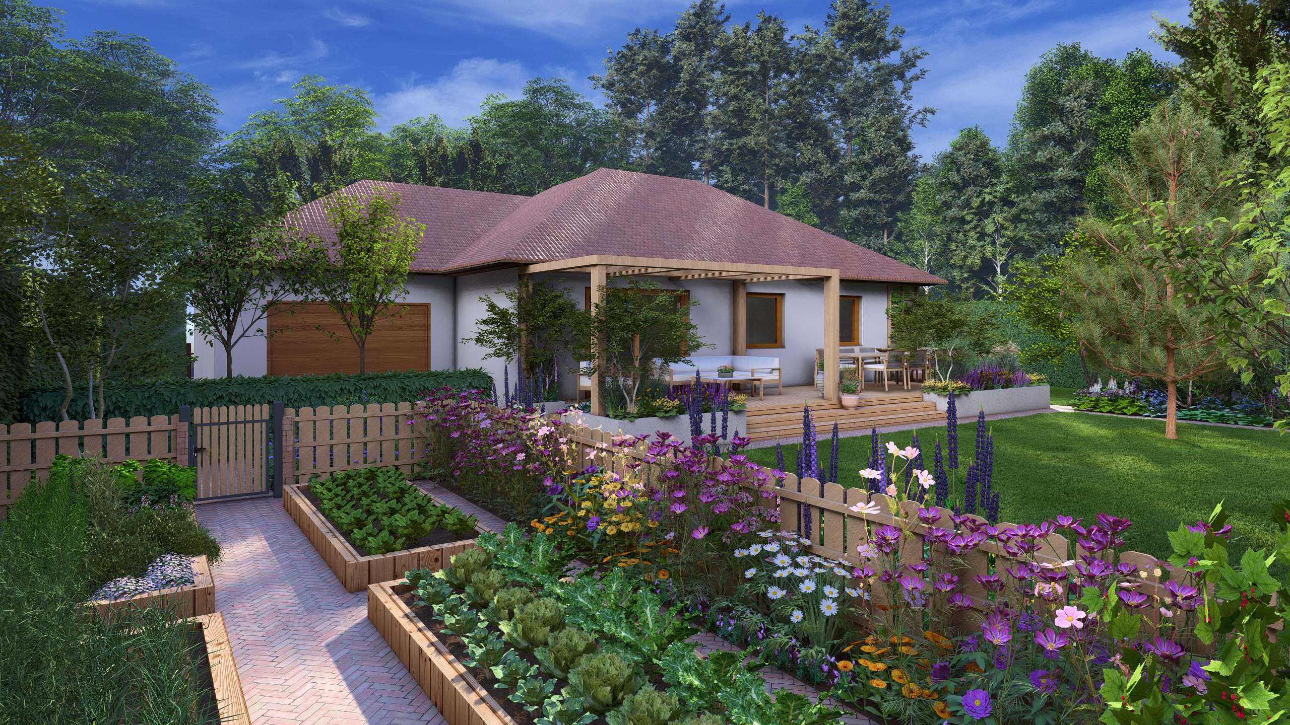 Moim zadaniem było tchnąć życie w ten ogród co dla mnie oznaczało przede wszystkim wprowadzenie drzew i krzewów liściastych, ale tez kwitnących bylin. Dzięki temu ogród zyskał zmienność w czasie, kolor, zapach i przytulność.