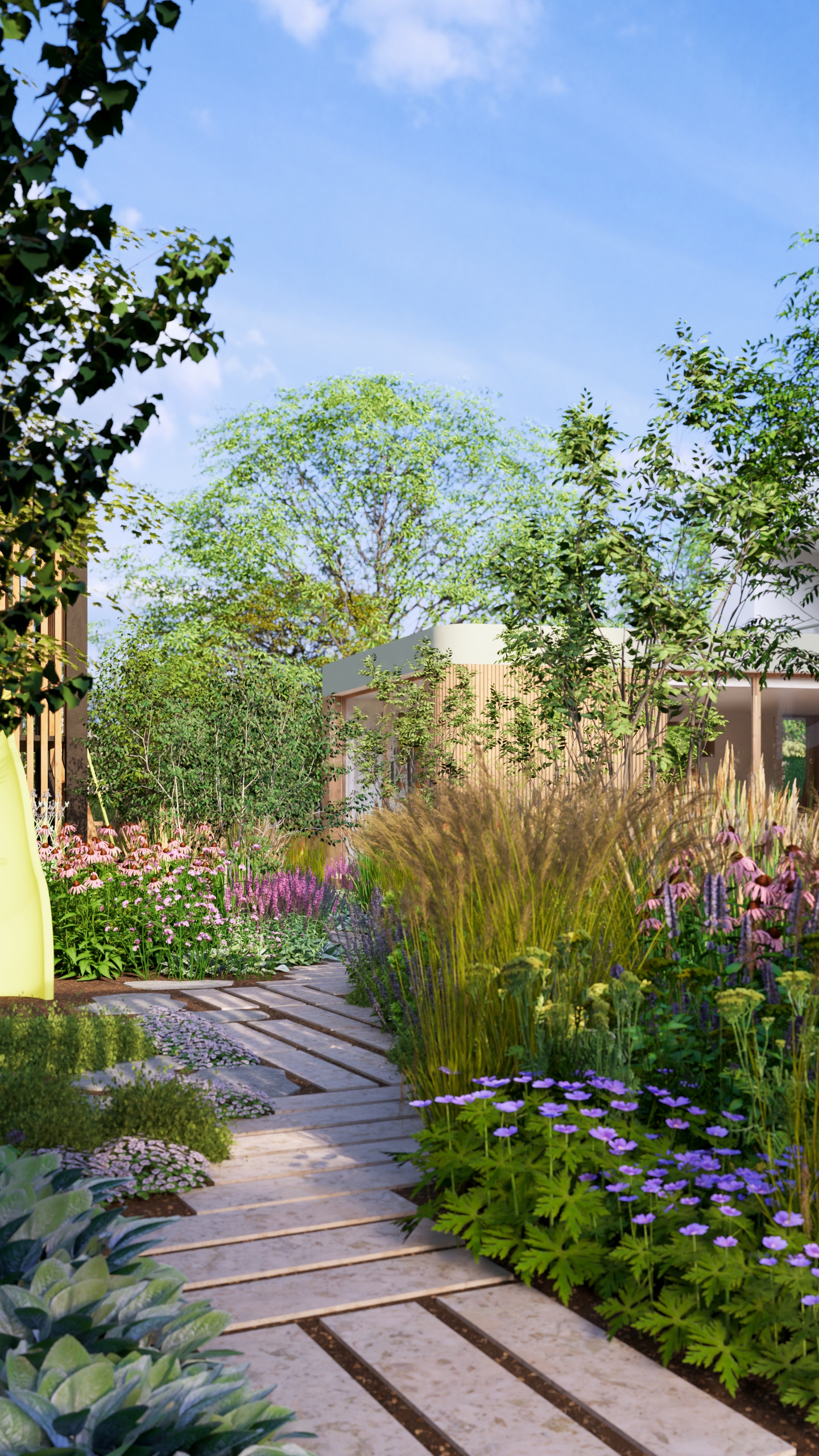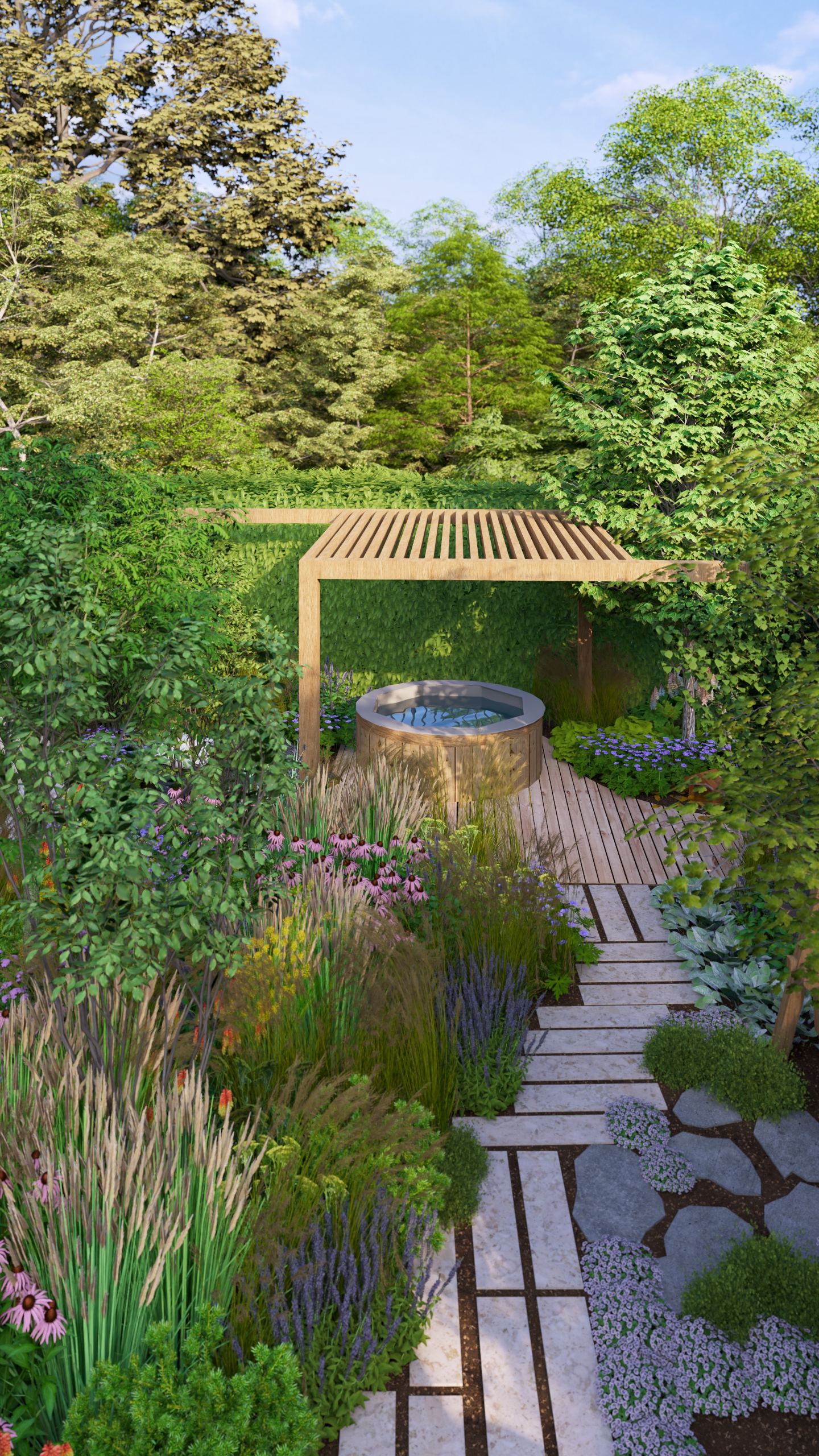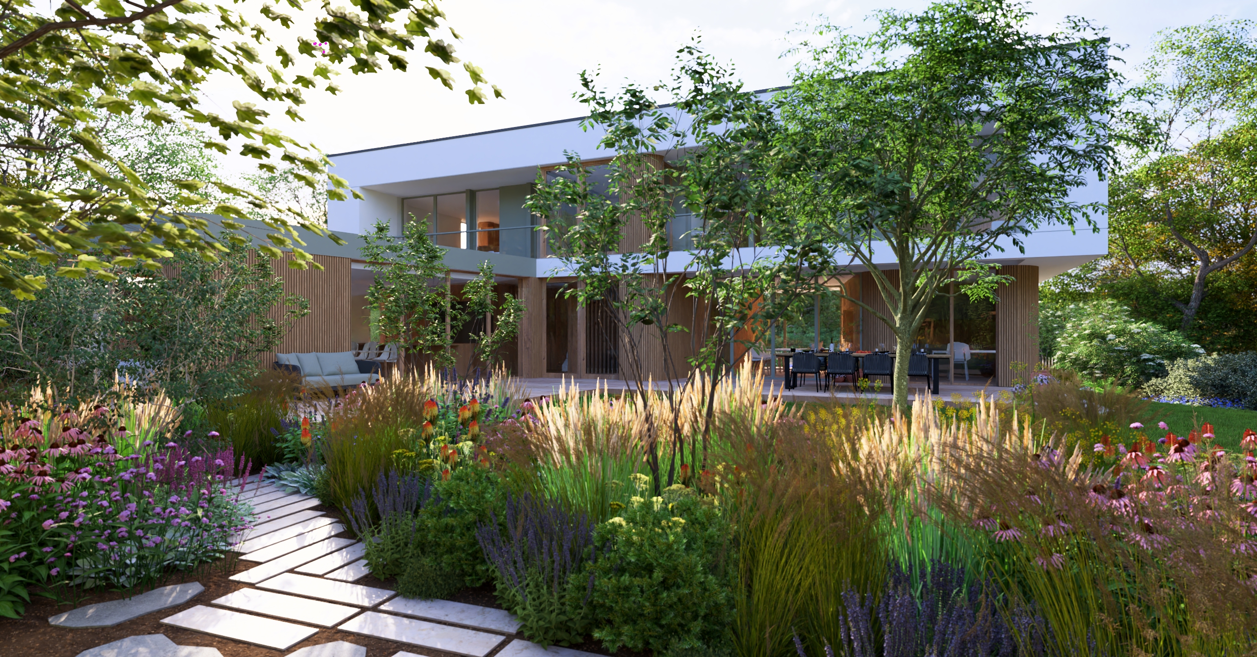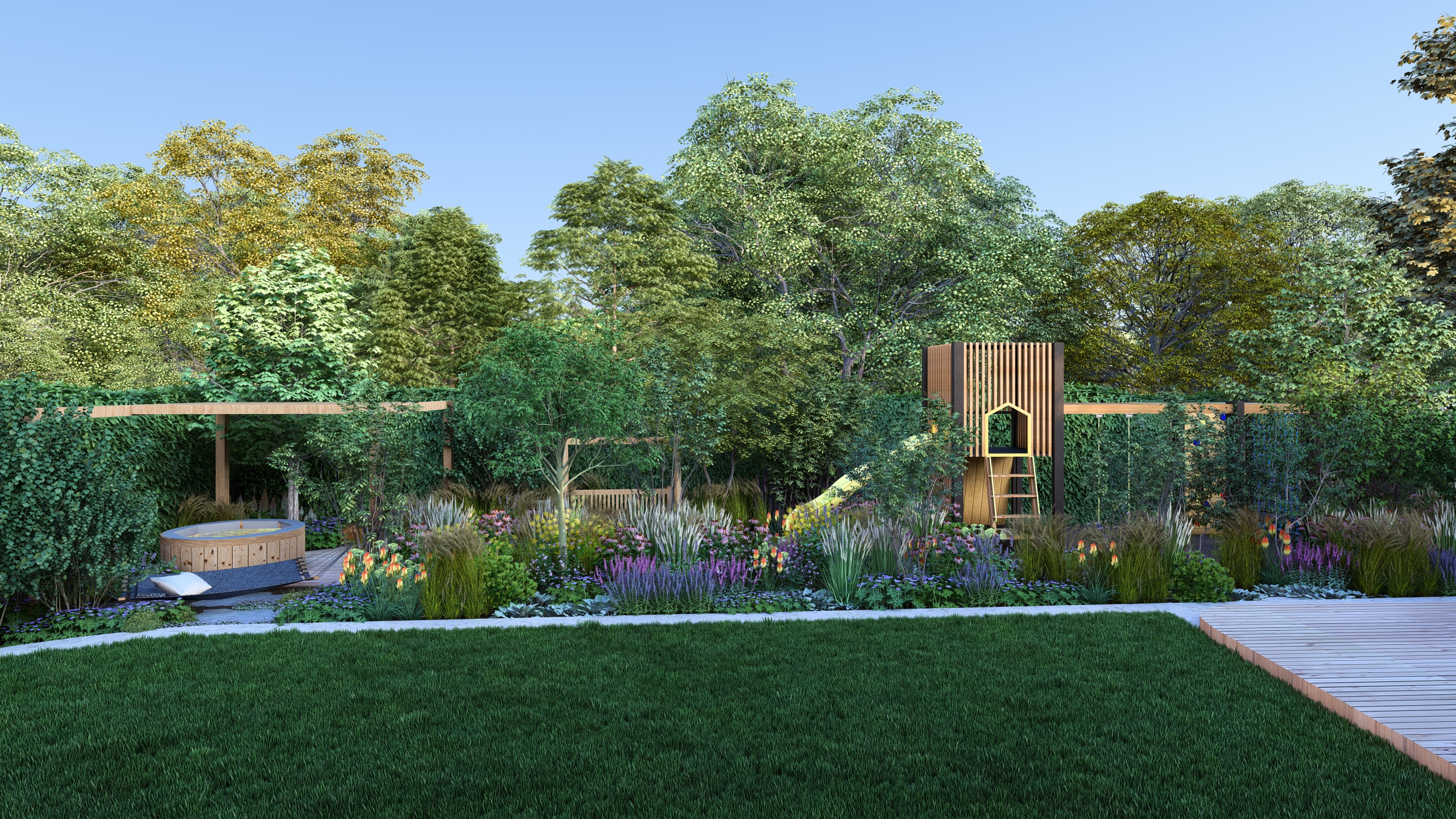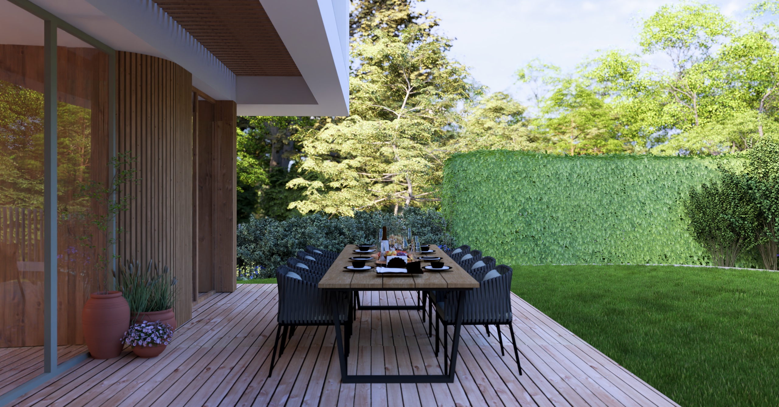 aby na małej działce stworzyć ogród dający możliwość życia w naturze. Te 3 rzeczy przyszło mi połączyć w tym projekcie.