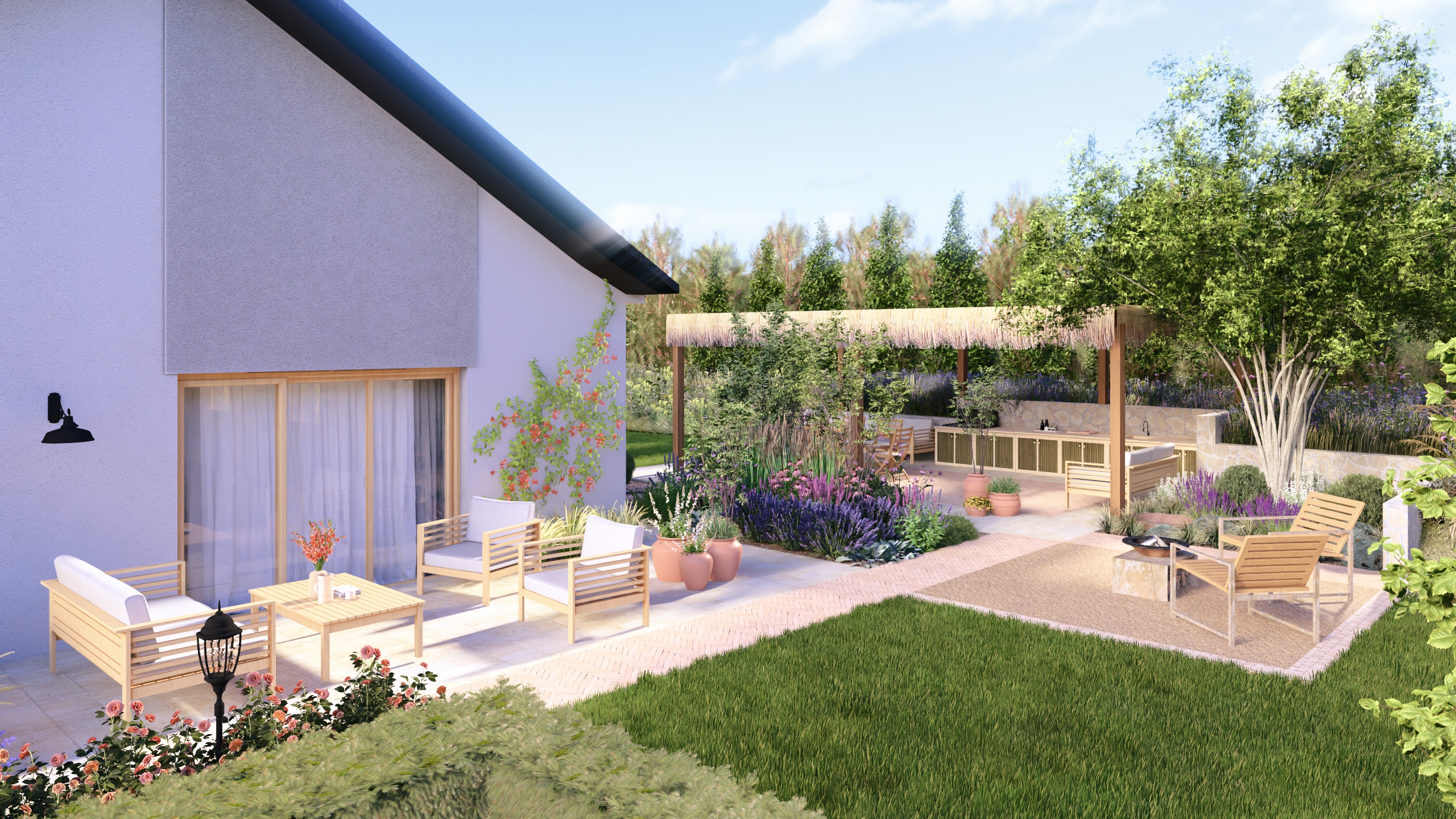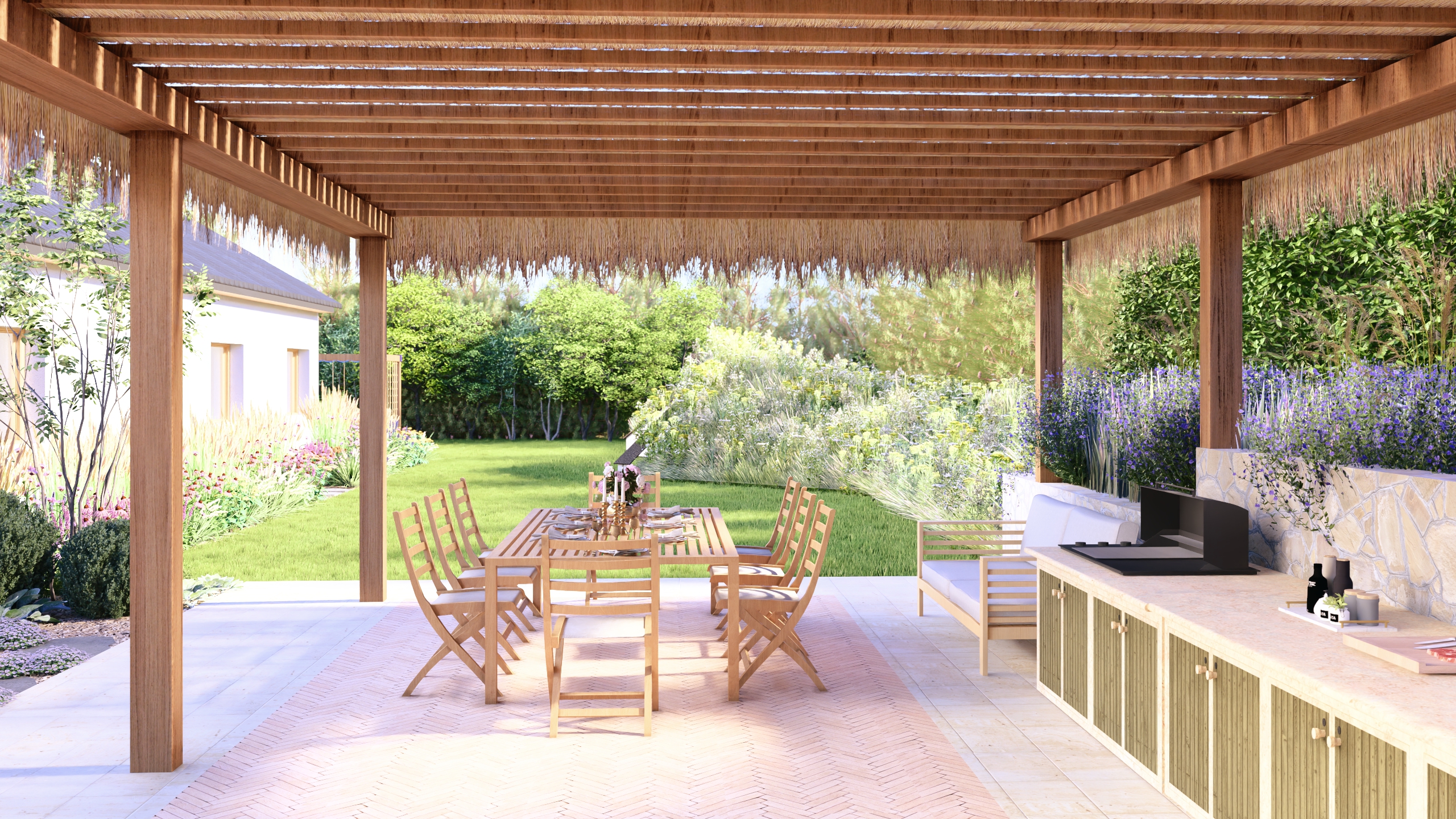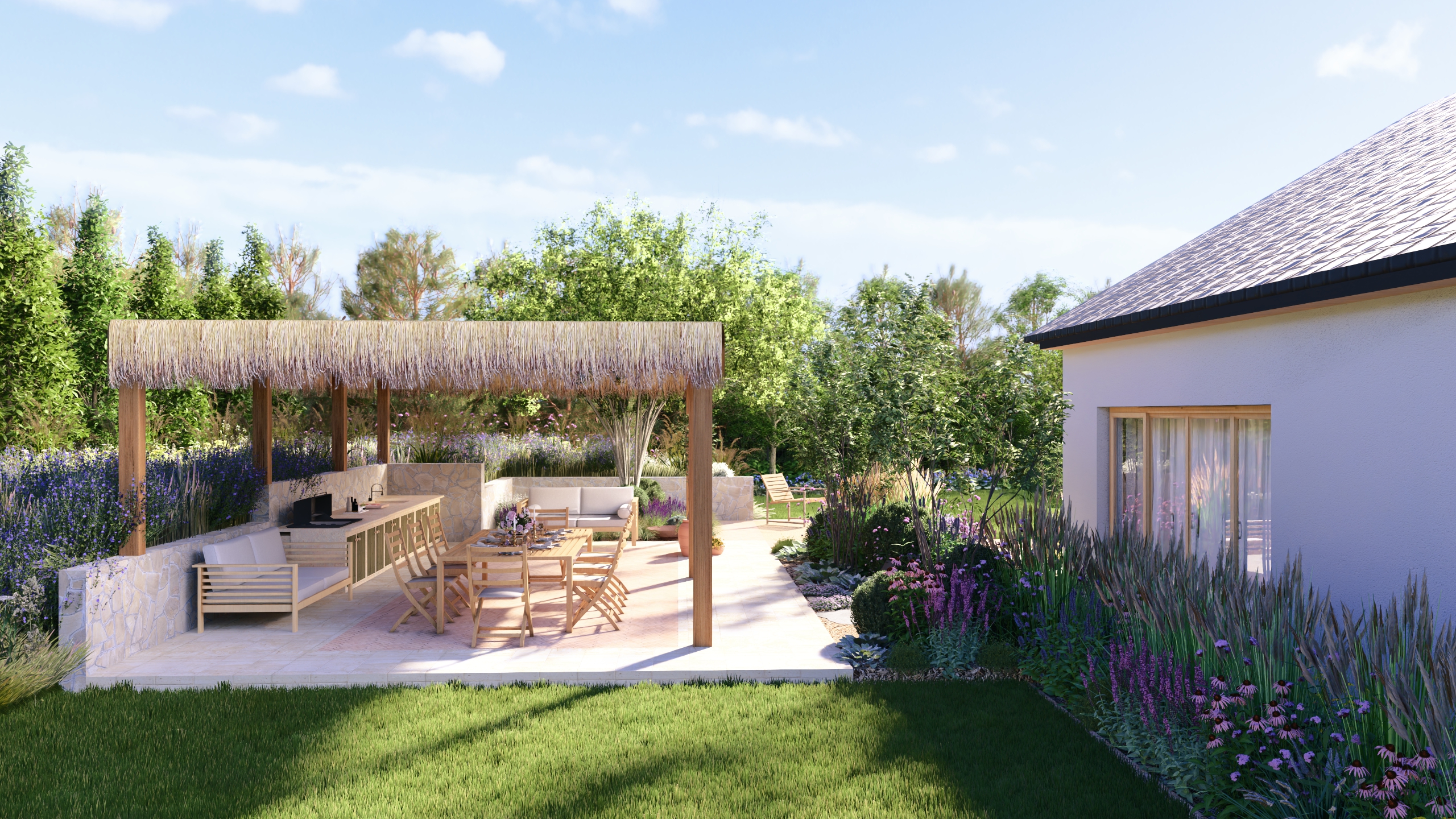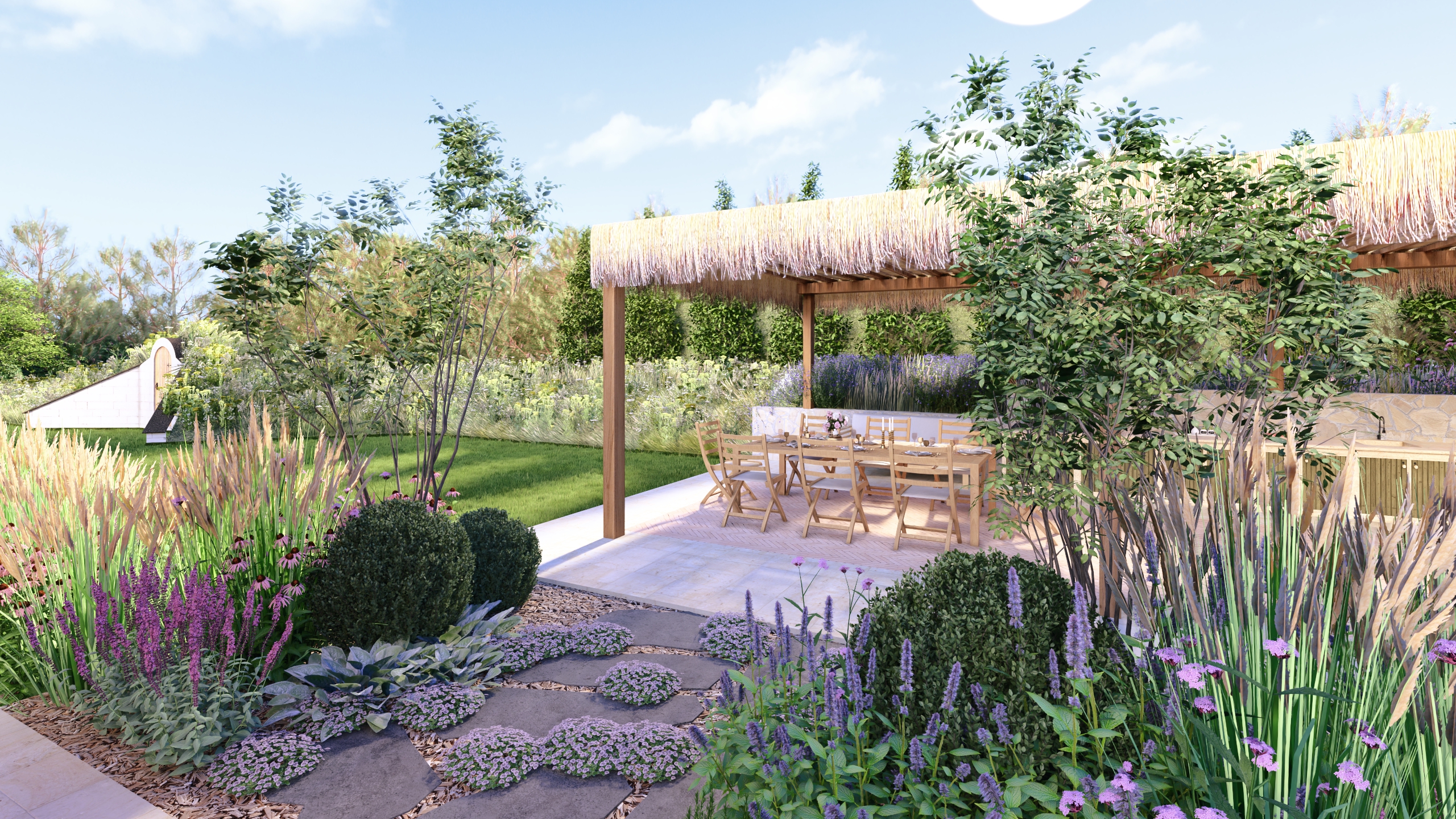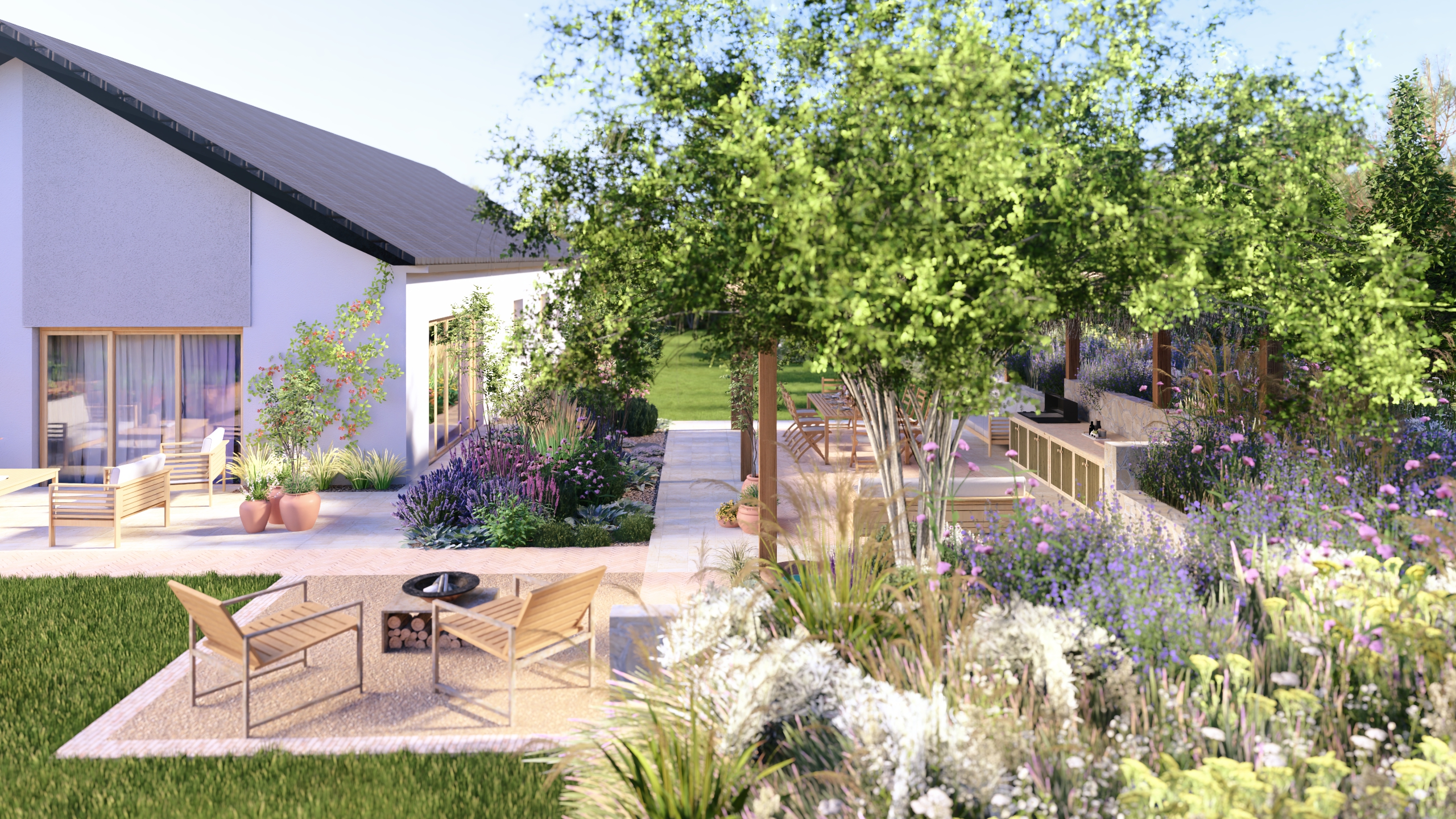 Ten ogród łączy w sobie nutkę włoskiego stylu z elementami dzikiej przyrody