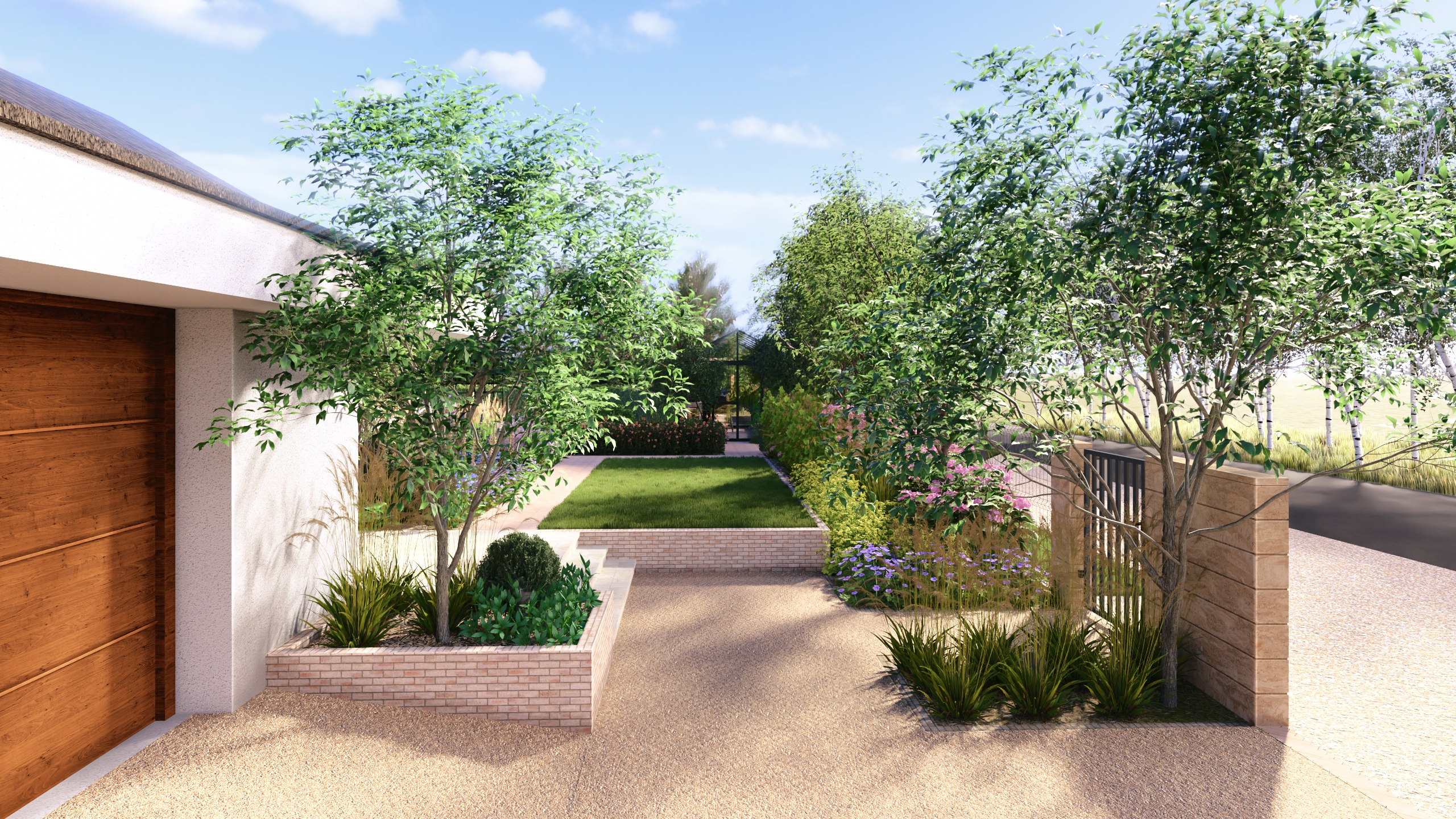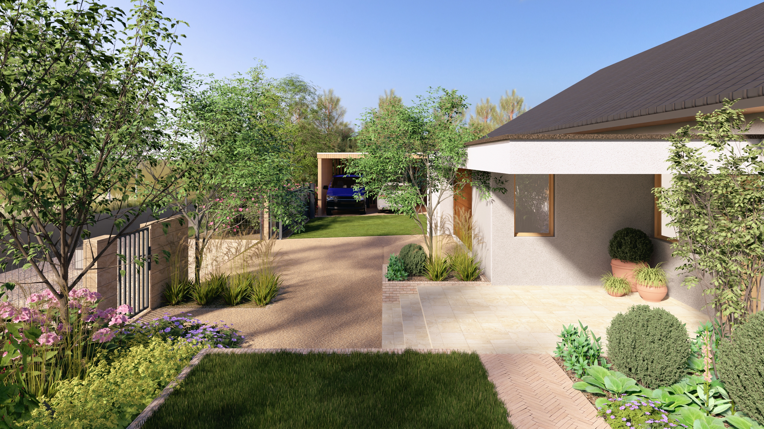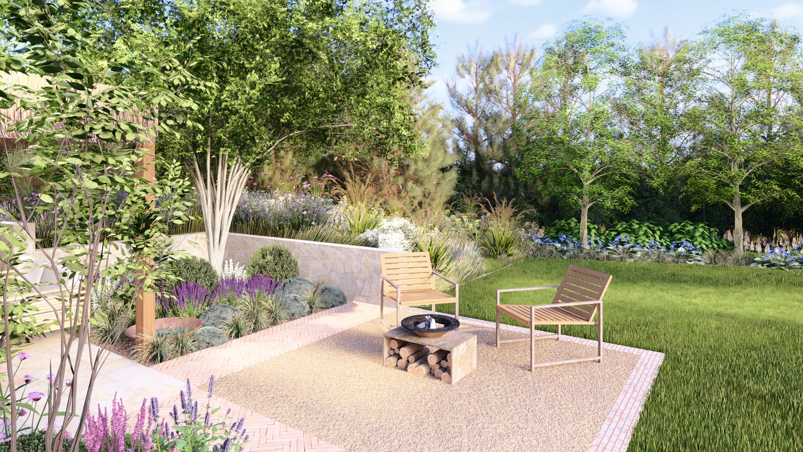 Ogród w Niepołomicach ma być miejscem do życia i kontaktu z naturą. Dlatego poza urządzonymi przestrzeniami, pozostawiliśmy tez miejsca dla dzikiej przyrody gdzie swobodnie będą mogły rozrastać się pokrzywy, polne kwiaty, a owady i drobne płazy znajda tam miejsce schronienia.