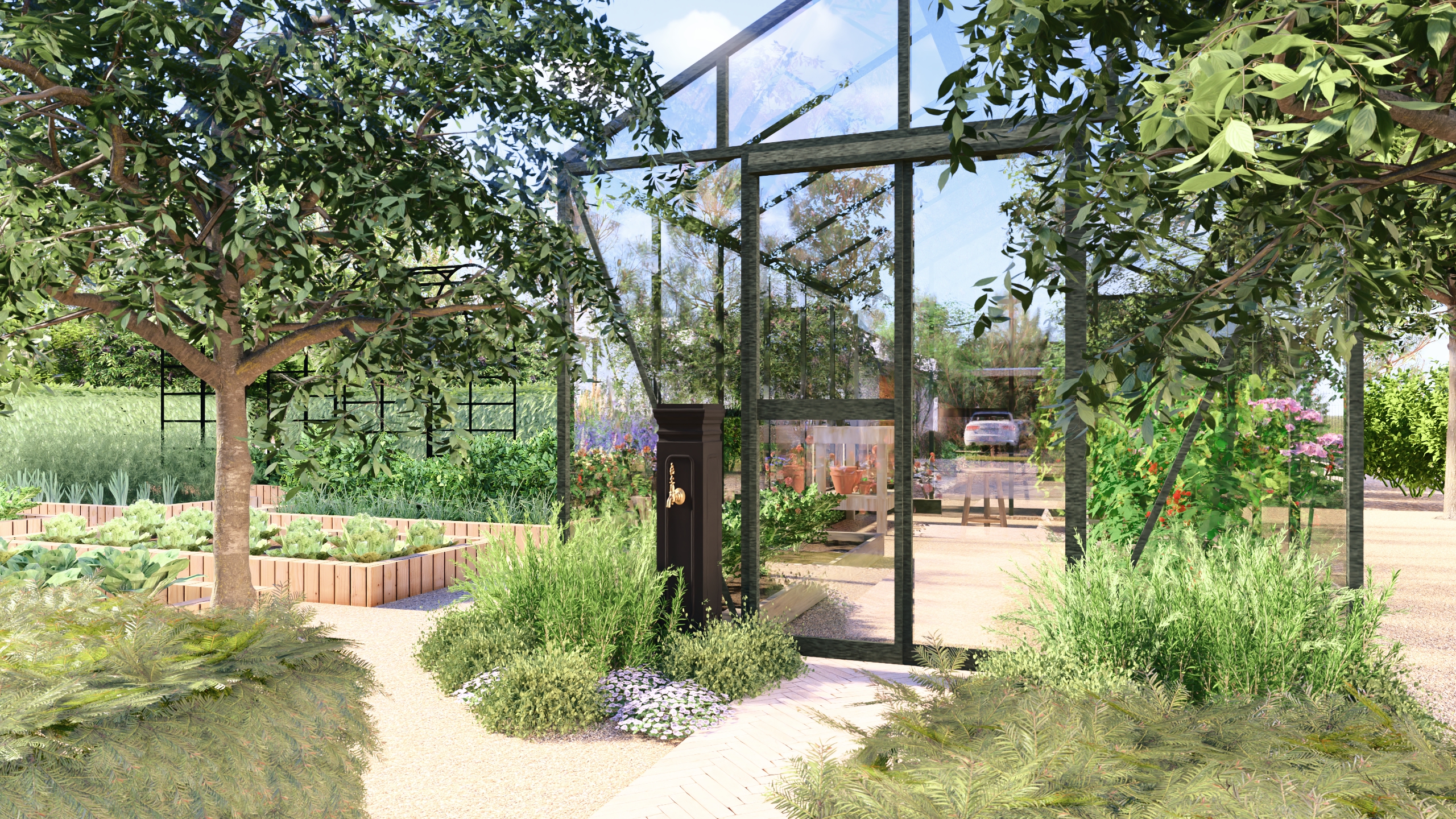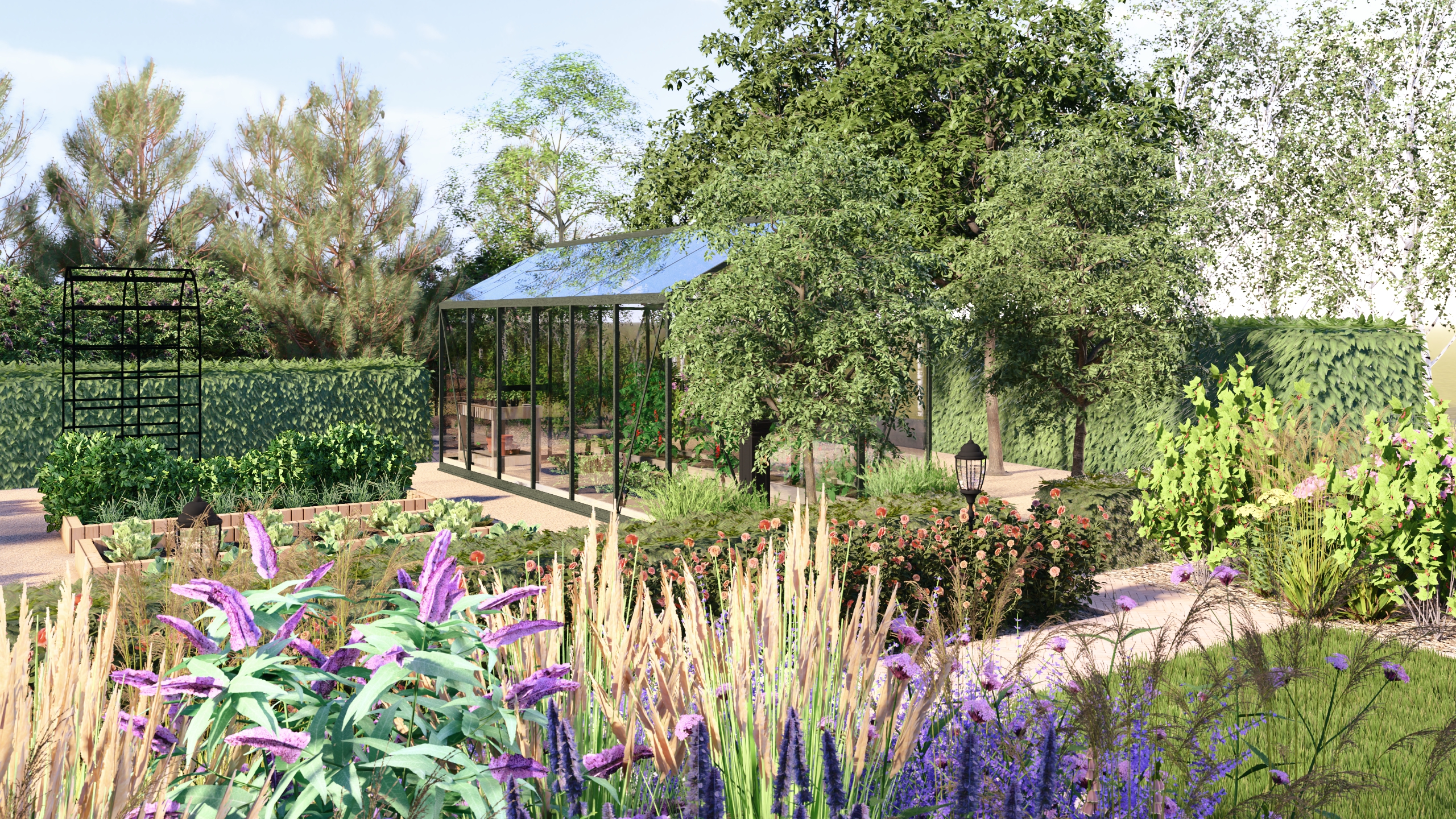 Ukształtowanie terenu, nawierzchnie, warzywnik, nasadzenia