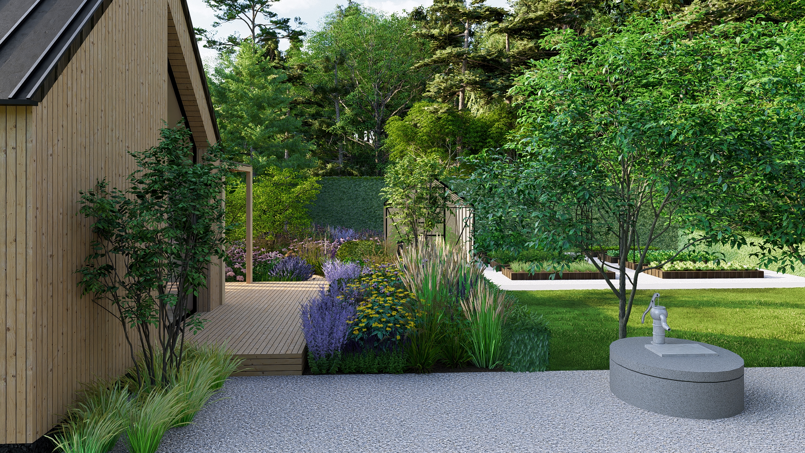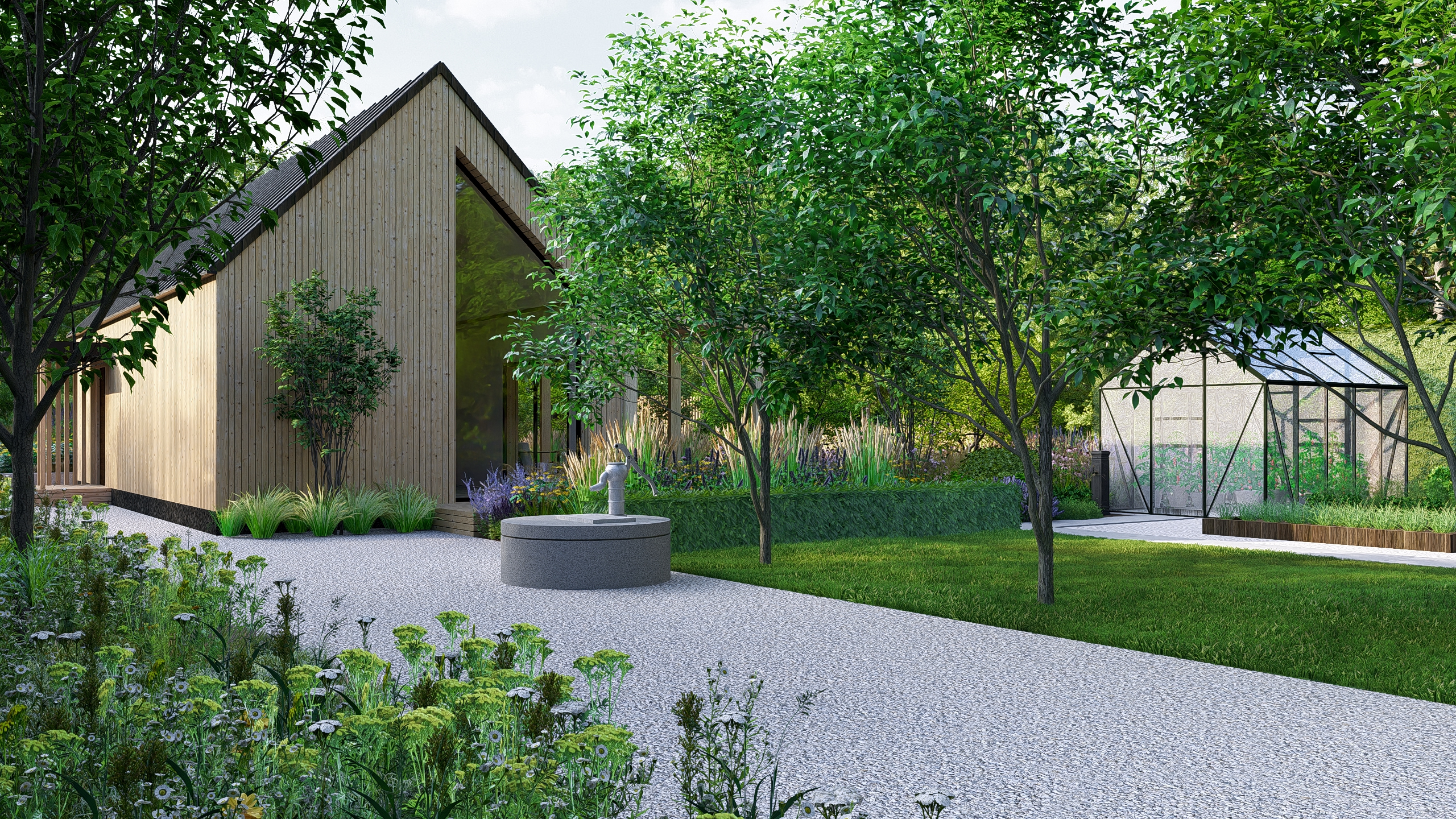 Warzywa wyprodukowane na działce będą przechowywane w piwniczce ziemnej, którą wkomponowaliśmy tak, aby maksymalnie ukryć ją w zieleni.