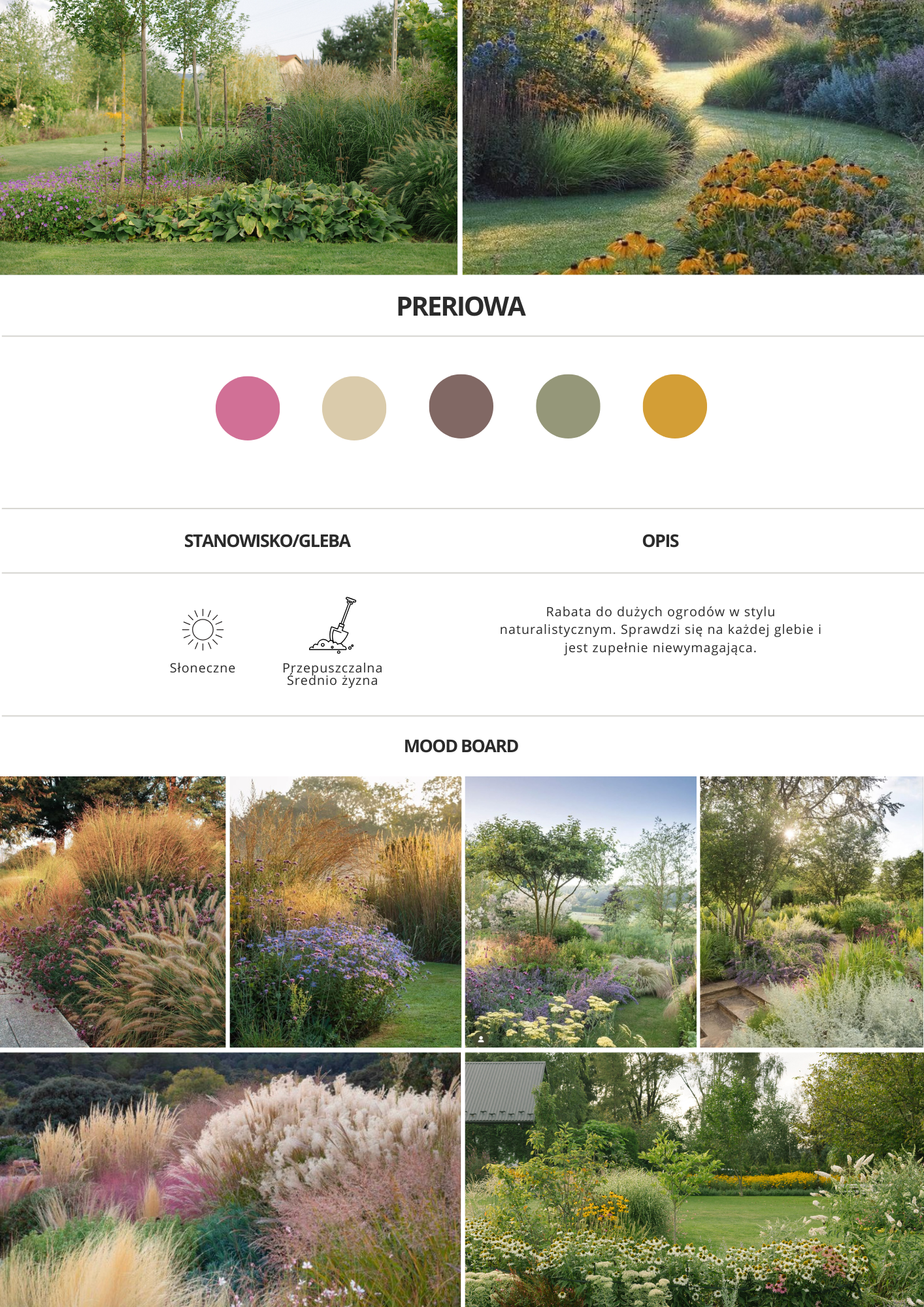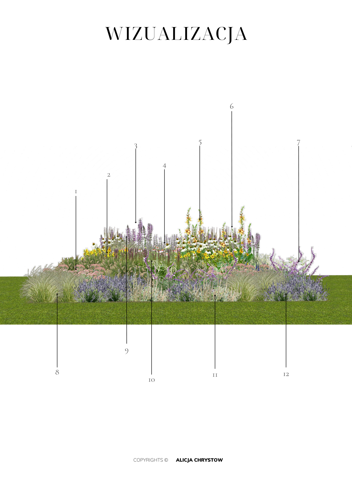 Ta rabata to ruch, zmienność, naturalność. Sprawdzi się dużych ogrodach. Kwitnie od początku lata do pierwszych przymrozków, a ze względu na dużą ilość traw ozdobnych jest także dekoracyjna zimą.
